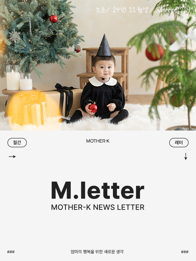 25년 마지막 M레터의 표지는 크리스마스 컨셉으로 두돌 기념 촬영을 다녀온 소윤이가 장식해주었어요! 세상의 모든 아가들과 엄마들 모두 따뜻한 연말 되시고 미리 메리크리스마스💚🎄